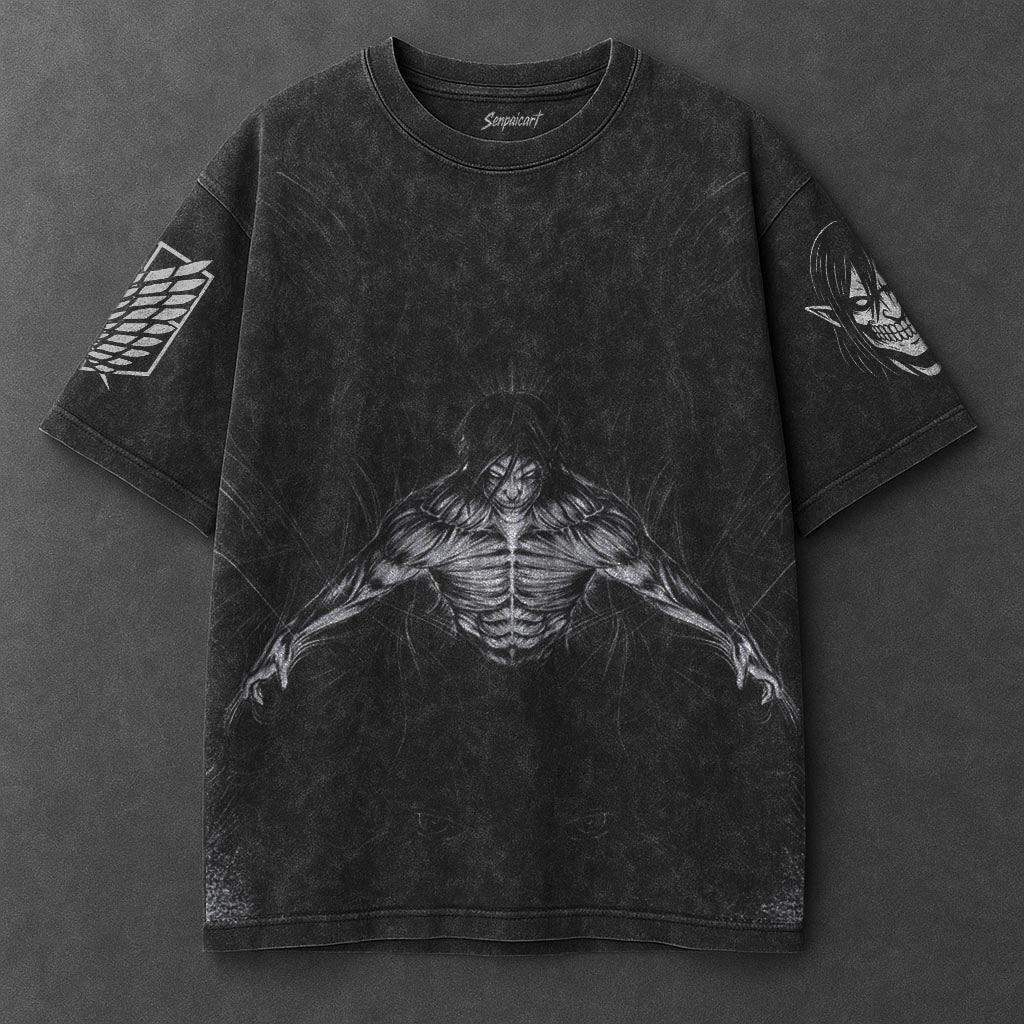 Attack on Titan Oversized Sleek Black Washed T-Shirt