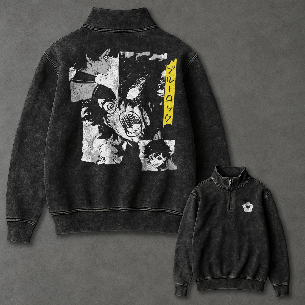 Blue Lock Slouchy Half Zip Up Washed Sweatshirt
