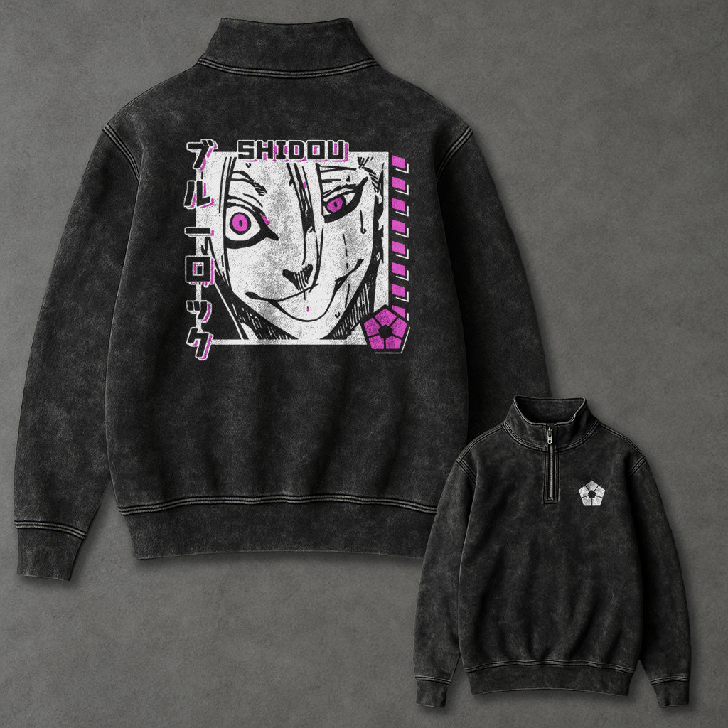 Blue Lock Tunic-like Half Zip Up Washed Sweatshirt