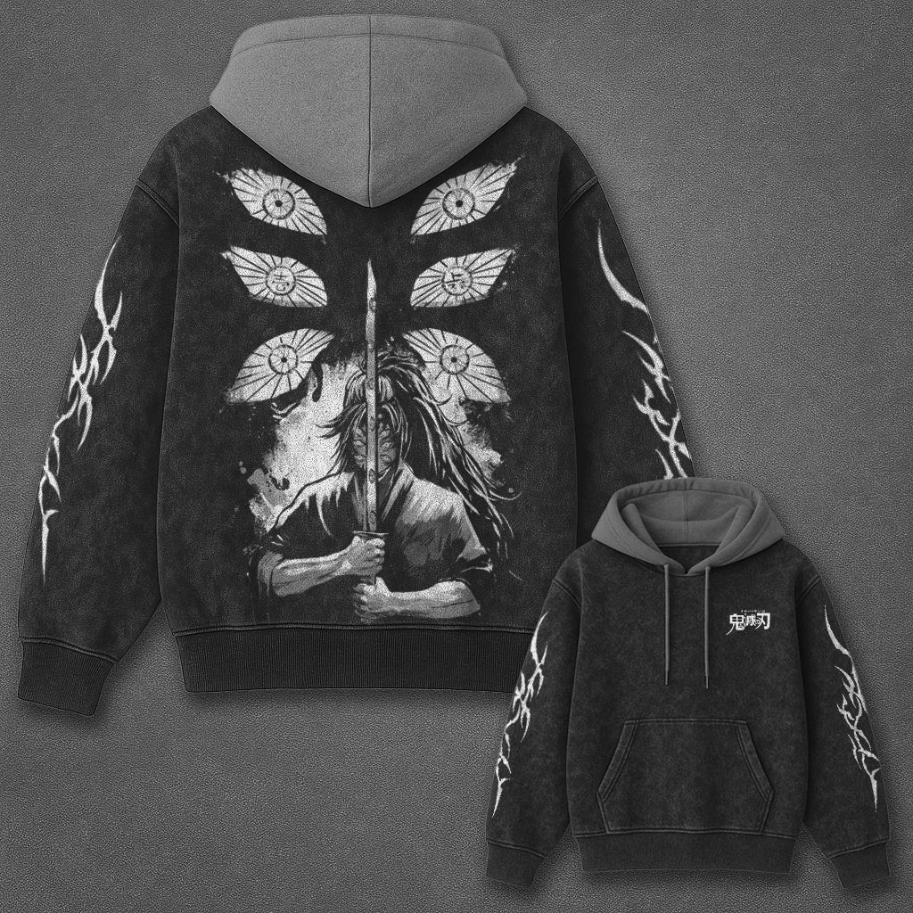 Demon Slayer Essential Premium Black and Grey Washed Hoodie