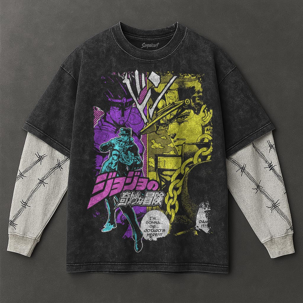 Jojo Premium Airy Black Double Sleeves Washed T-Shirt